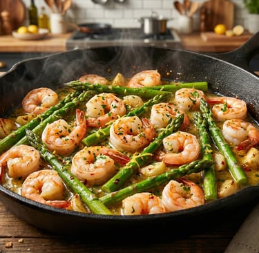 Air-Fryer Variant: Air-fry seasoned shrimp and asparagus at 200 °C/400 °F for 6–8 min, shaking halfway; melt butter with garlic separately and toss at end.